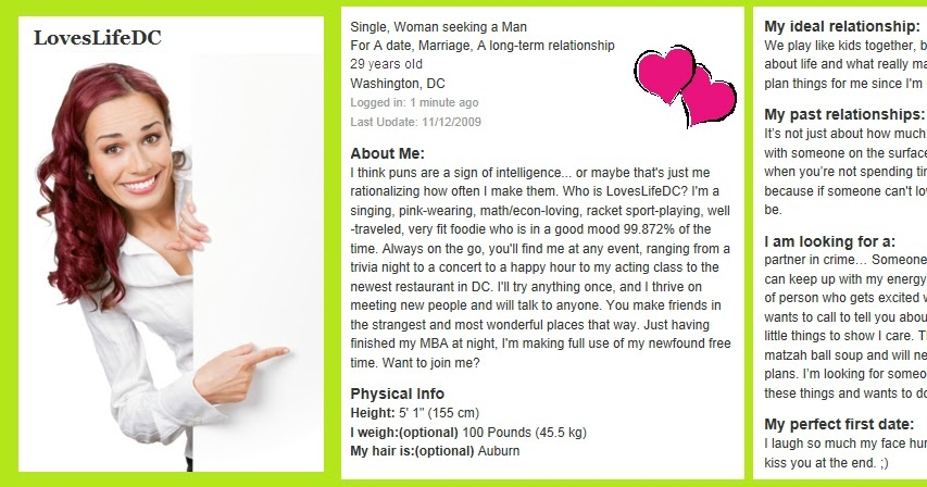 On most dating sites, a handle cannot be used by two different members, thus making it a unique identifier. But not only does your handle need to be unique, it also needs to be personal, interesting and somehow indicative of who you are, without being off-putting, too long, or a challenge to pronounce. Although pronouncing your handle may seem counterintuitive, this is online dating after all it will come in handy once you start meeting people. Continue to 3 of 6 below. For those who don't know, a tagline is the one-liner that introduces you to the other singles surfing the online dating sites. On most online dating sites, the tagline is found at the top of every dating profile and next to everyone's photo and handle when appearing in a search list. Some of the newer, younger-focused or speed dating sites ask only for a tagline and nothing else—even more the reason to ensure yours is well crafted. Taglines are very similar to handles in that they offer a very short space with which to impress or attract someone. They differ in that they can be easily changed and provide a bit more space to describe whatever it is you feel relevant. Quotes from famous people that you admire, agree with, or want to emulate are quite popular in taglines as are truisms and lines from famous movies or songs. The problem with using any of these kinds of pieces as your tagline is that others are probably thinking the same thing. So what can you use in your tagline? Light works well for dating or friendship-based profiles, but you can be a little bit more serious for relationship-oriented profiles. Racy or adult-natured taglines are only appropriate on adult dating sites. This step may seem redundant in that it's obvious you are looking to date someone new by putting up a profile on a dating site. As well, different online dating sites have different relationship categories with which to choose from. A select few have different sections to choose from where you can post your profile whereas others are only geared to long-term relationships, such as. Knowing what kind of relationship or interaction you are looking for before you carefully craft your online dating profile will save you time by ensuring you only post your profile at the most eligible and suitable dating site s. Continue to 5 of 6 below. No matter what its title, most online dating sites will require a paragraph or two from you in essay format, describing who you are and what you are looking for. If this part of the process seems too daunting to you, or if you'd rather not invest the time, sign up at one of the online speed dating sites instead, as most don't use essay introductions in their profiles. Quickly brainstorm what you'd like to share in the essay portion of your dating profile on a piece of paper. Then, circle three to five things that you think are the most interesting or engaging. First, of the points you circled, does one of them imply a place that you spend a lot of time in? If so, try writing a sentence or two that describes why that place is special to you. For instance, you may spend a lot of time in coffee shops writing on your laptop, reading a book, or chatting with friends. Keep whatever your reasons are in the back of your mind as you move to the next step. Using the coffee shop example again, imagine yourself at the coffee shop. Would someone waiting in line to order notice you, and if so, what would they see, hear or experience coming from your general direction? Then let's get to the actual writing of it. From the coffee shop scenario or whichever locale you chose that is specifically suited to your personality and interests , write a very short story for the person reading your profile, so they can feel like they've actually met you already. A paragraph or two is more than enough. Maybe your coffee shop stint ends quickly because you have to rush off to a soccer game or to pick up the kids from school. Perhaps other patrons would overhear you belting out an impromptu song in preparation for an upcoming gig or see you playing a video game on your laptop. Or maybe few people would notice you sitting in the darkened corner as you scribble furiously on a pad of paper, with earphones blaring your favorite songstress' newest album. In the end, it doesn't really matter as long as you make the story your own. Next, invite the person reading the profile to contact you, so they can join you in doing something you've just intimated you are interested in or passionate about. Folks new to town can easily ask for tour guides to show them around, and people more familiar with the area can suggest a date activity. Bolder singles with confidence in their writing abilities can even go so far as to write their Mr. Right or Right Now into their short story, detailing what they'd like in a partner or date through their own fictitious observations. Finally, read over your finished work, and make sure to spell check it. If you like you can even email your dating profile essay to a friend for review before posting it to your chosen dating site.